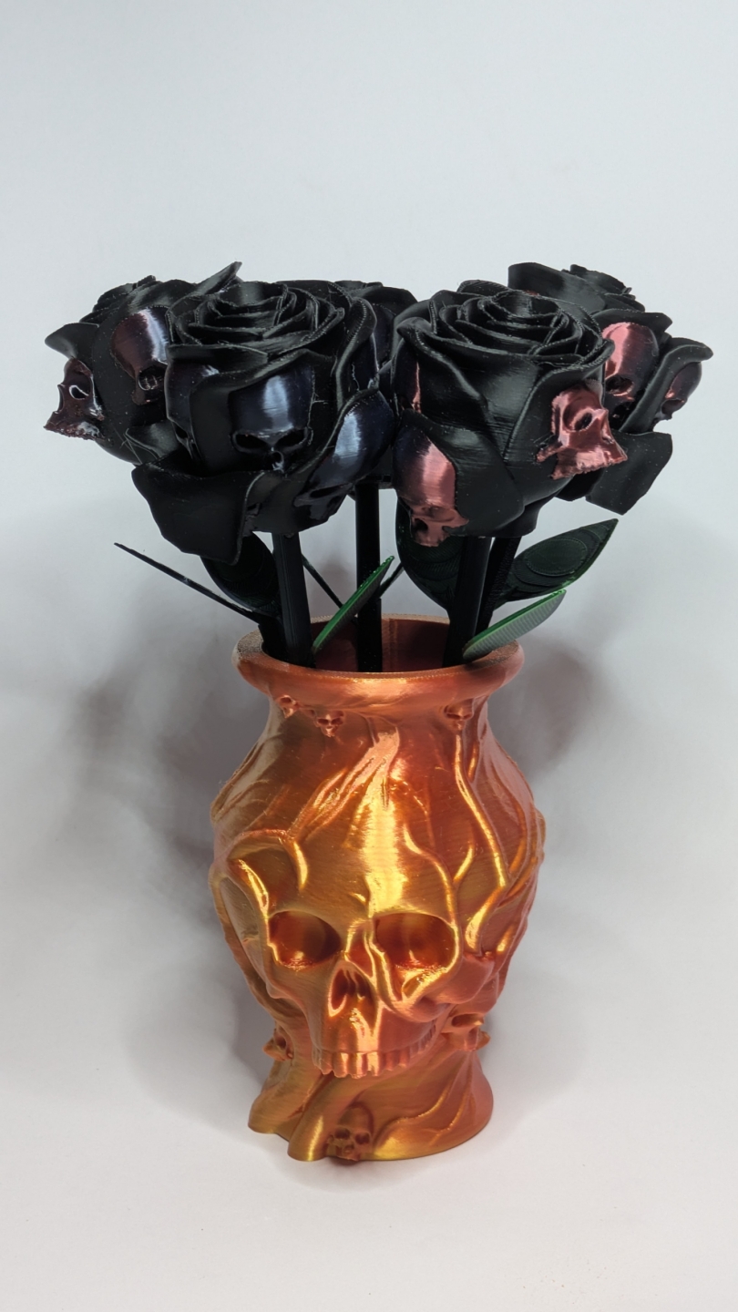 Beautiful 3D printed vase perfect for displaying Forbidden Roses or decorative flowers. Small size holds 4-5 roses. Available in multiple colors soon.